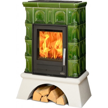 Вставка данной печи выполнена из чугуна, очень прочного материала. Цветовую гамму кафеля можно подобрать на Ваш вкус: белый, торф или торба. Цоколь печи белый. В низу кафельной печи Britania находиться вместительная ниша для дров. За час печь в номинальном режиме расходует 2,5 кг сухих дров