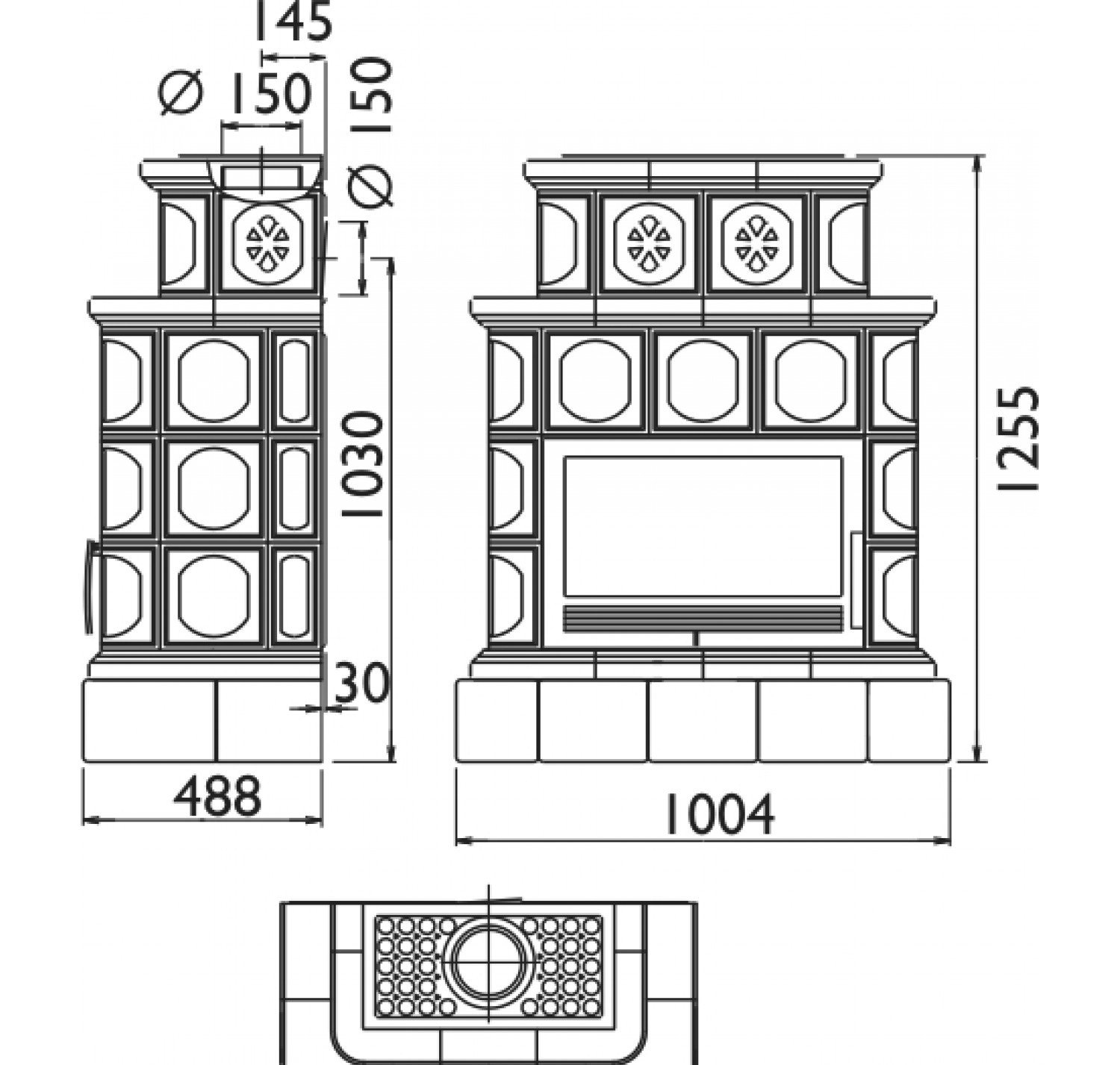 - Два варианта вывода дымохода (верхний, задний).