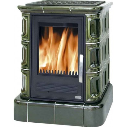 Кафельная печь Marina KP вставка комбо кафельный цоколь зеленая, с теплообменником