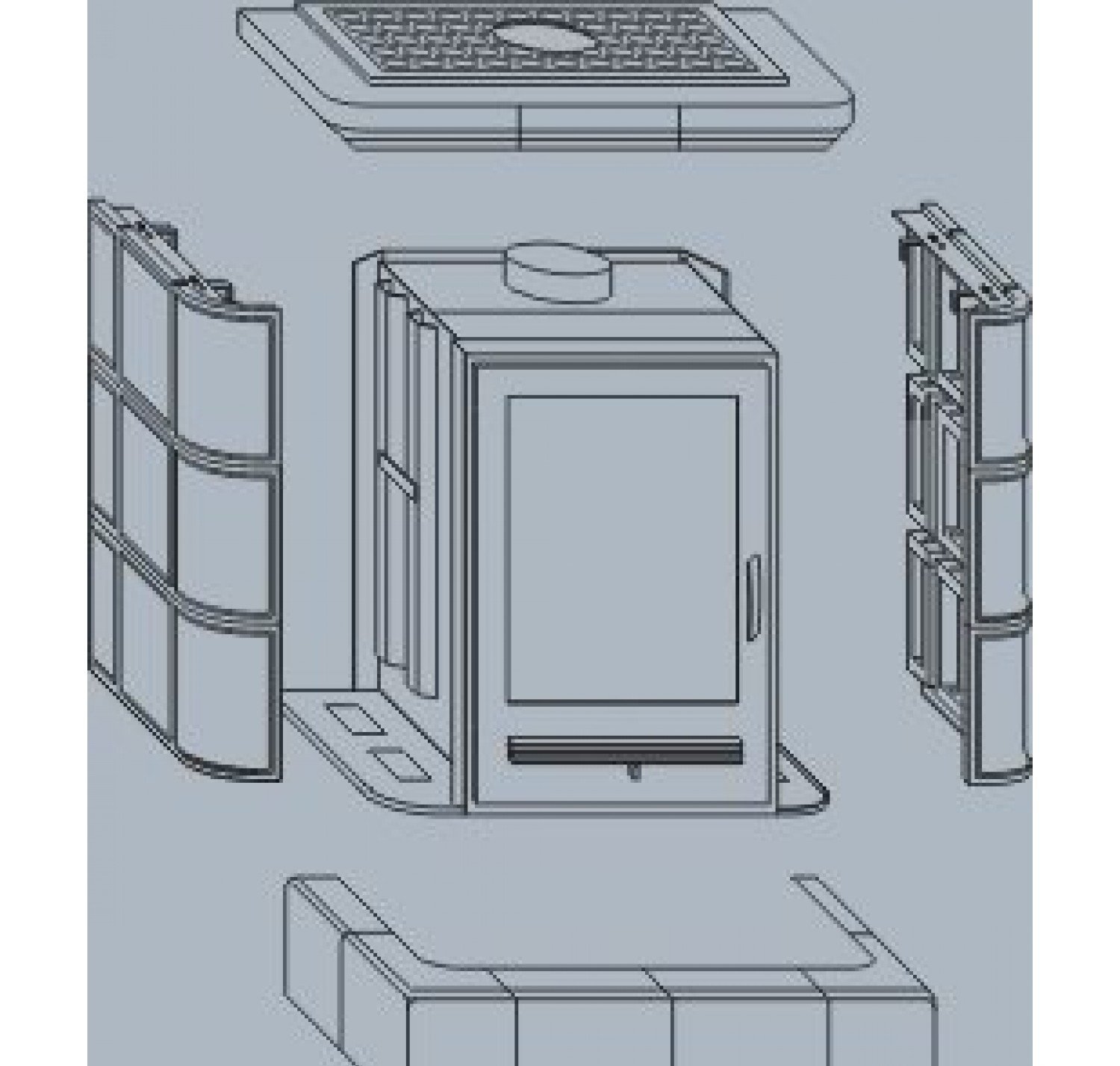 Вставка данной печи комбинированная, выполнена из чугуна и стали. Цветовую гамму кафеля можно подобрать на Ваш вкус: песчаная, зеленая, коричневая, пикассо. Цоколь печи кафельный. За час печь в номинальном режиме расходует 1,9 кг сухих дров.