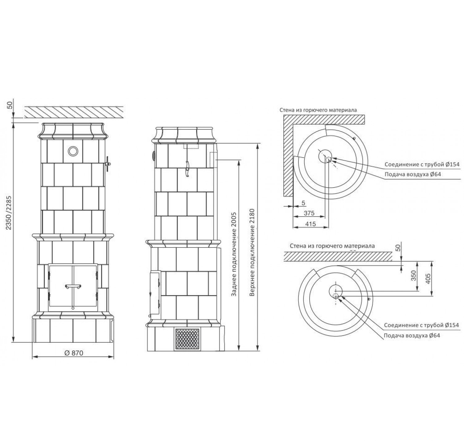 Кругая изразцовая теплонакопительная печь allmoge 523