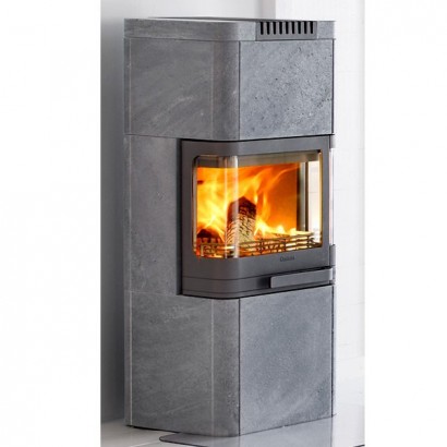 Печь-камин Contura 26T в облицовке из талькомагнезита. Оснащен чугунной решеткой, выдвижным зольником и широким фронтальным стеклом. Камин может быть оснащен вентилятором и теплонакопительным блоком: это позволит отапливать помещение в течение восемнадцати часов после угасания огня. Поток горячего воздуха регулируется с помощью шиберной заслонки, размещенной в верхней части камина.