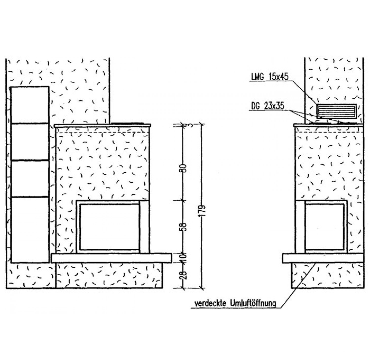Пристенный мраморный камин из Granit Naturschwarz.