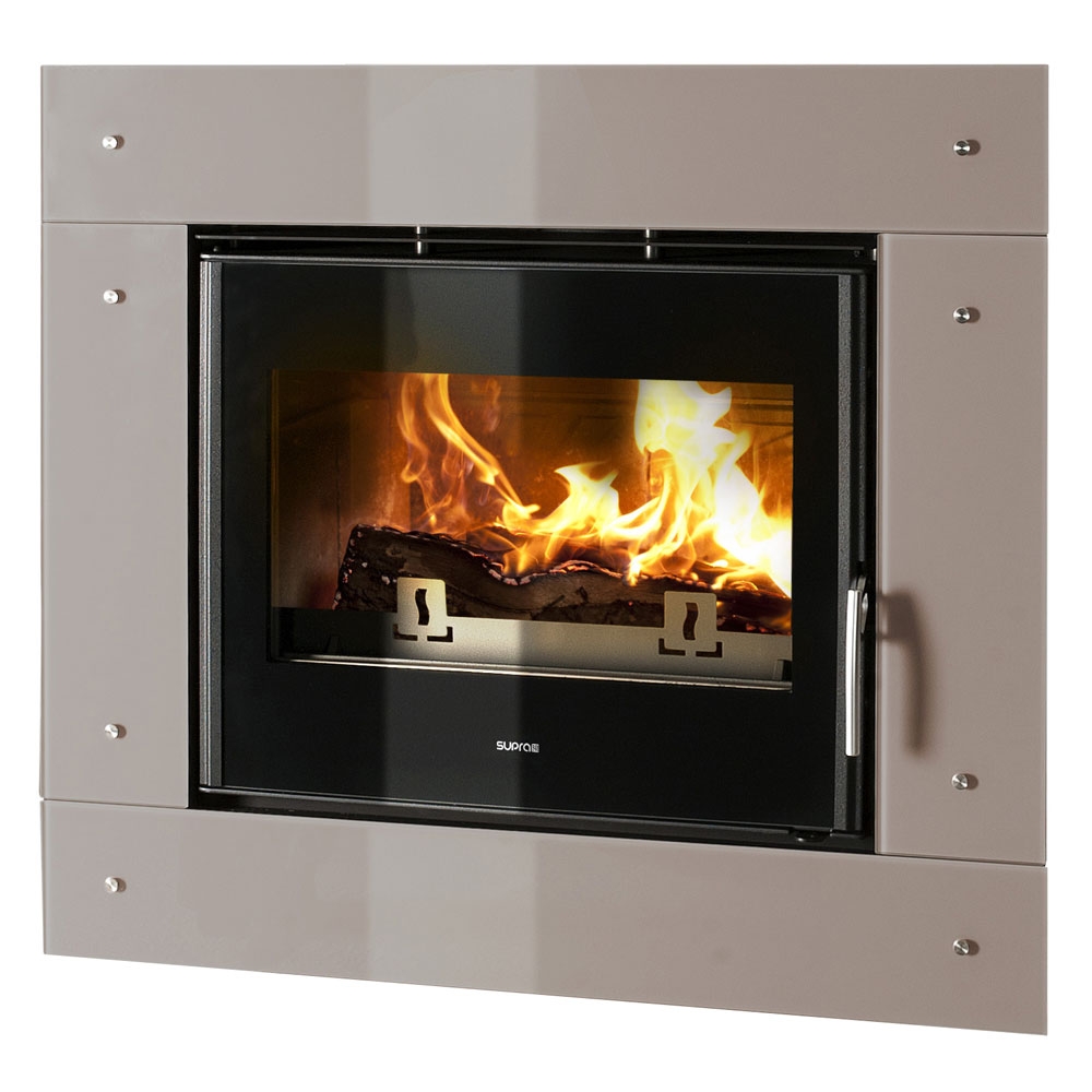 Встроенный камин под закрытые топки. Карамельно-песочная рамка.