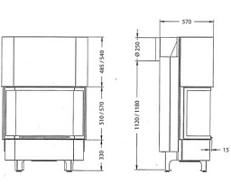 Камин серии Stylo из огнеупорного кирпича толщиной 5 см в виде четырехстороннего обрамления к топке. Металлическая топка 904 с колосником и зольником.