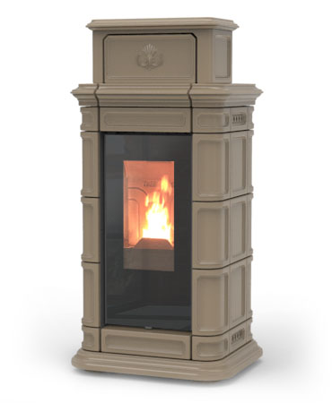 • Дизайнерская отъезжающая стеклянная крышка пеллетного бункера c элементами из керамики ручной работы (майолика)