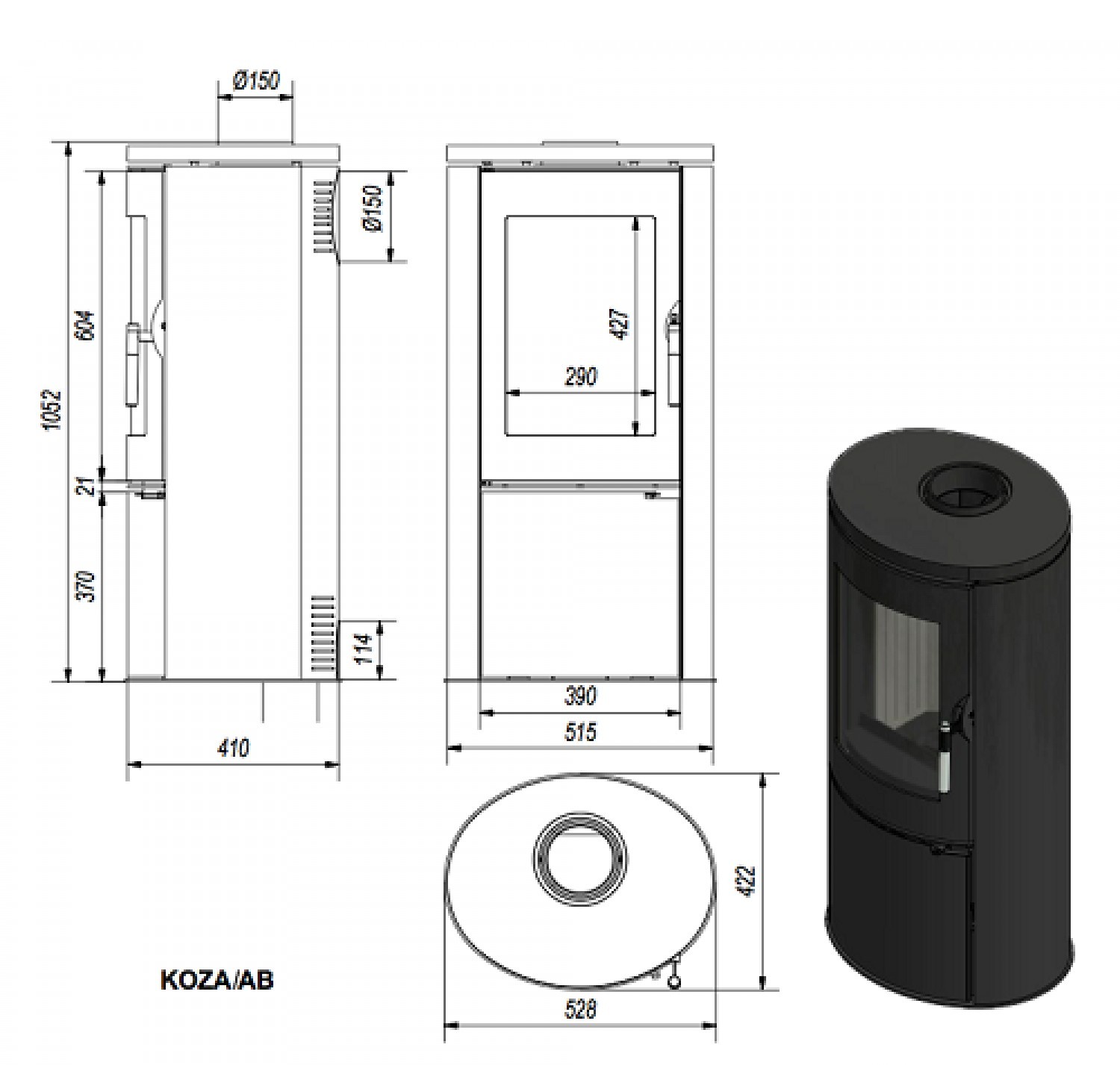 Печь-камин Koza/AB изготавливается из двух типов материалов: чугун и сталь.