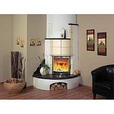 Одним из достоинств этой керамической дровяной печки является просторная топочная камера. Помимо основной фронтальной дверцы эта модель может иметь дополнительную боковую дверцу. Топочная камера этой модели изготовлена из чугуна. Латунная отделка делает эту модель законченной и придает ей особый шик.