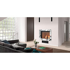 - Подходящие топки: с прямым стеклом с подъемом или боковым открыванием дверцы, открытая топка, электроочаг. В комплект входят плиты для адаптации под топку