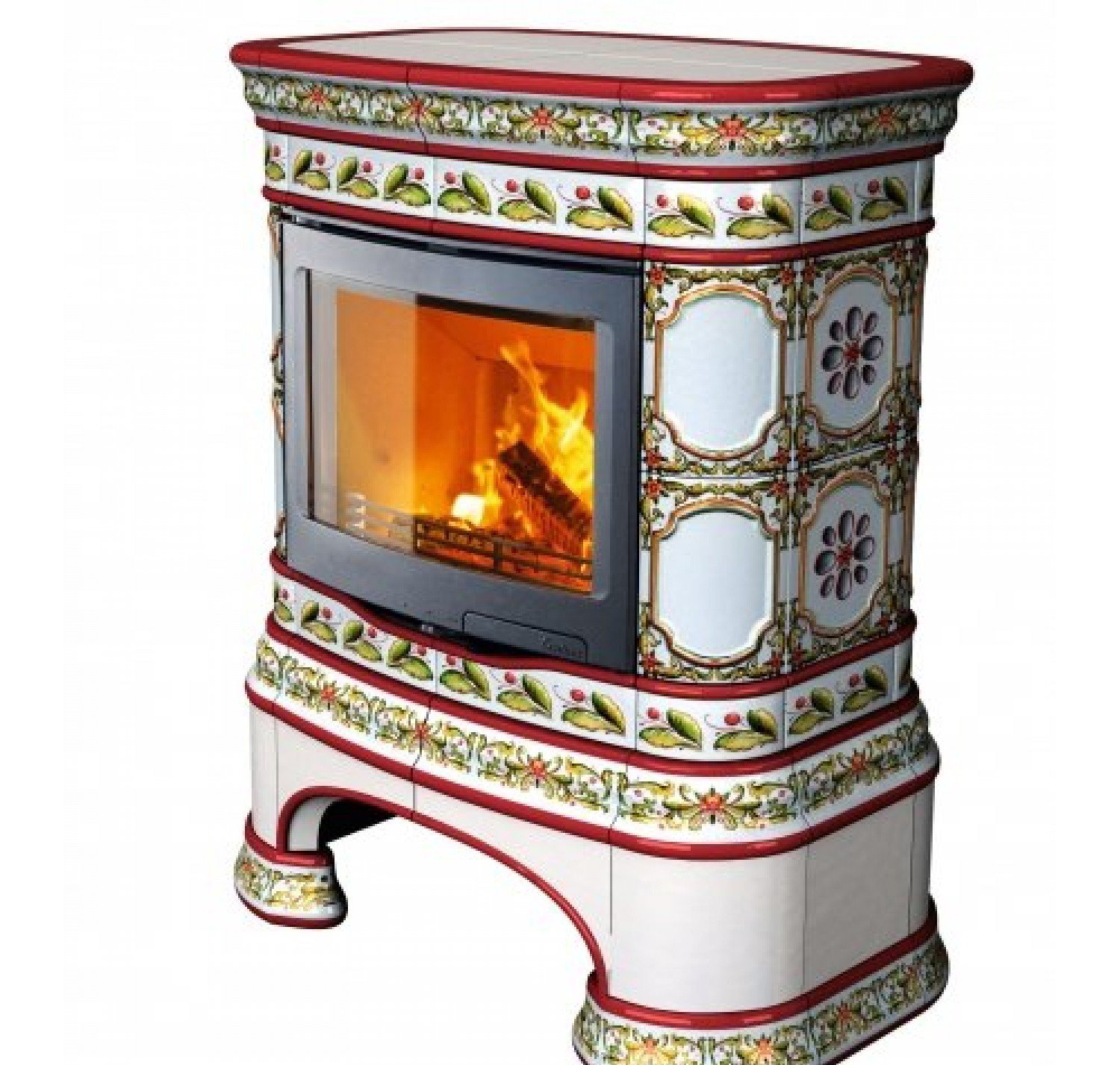 Эта красивейшая изразцовая печь оборудована высокоэффективной и герметичной топкой Contura i5. Печь-камин СКОНЕ можно эксплуатировать в режиме медленного горения, что позволяет Вам дольше наслаждаться красивой игрой пламени. Печи-камины серии Сконе отделаны изразцами в сказочно-русском стиле. Модель Сконе может быть выполнена более чем в 10 различных вариантах. Варианты с росписью: маки, васильки, руан, дельфт, васильки, либо в классическом однотонном белом варианте. Также эта модель выполняется в пристенном или центральном вариантах. Изразцовая печь «Сконе-центральный» выполнена с нишей для дров.