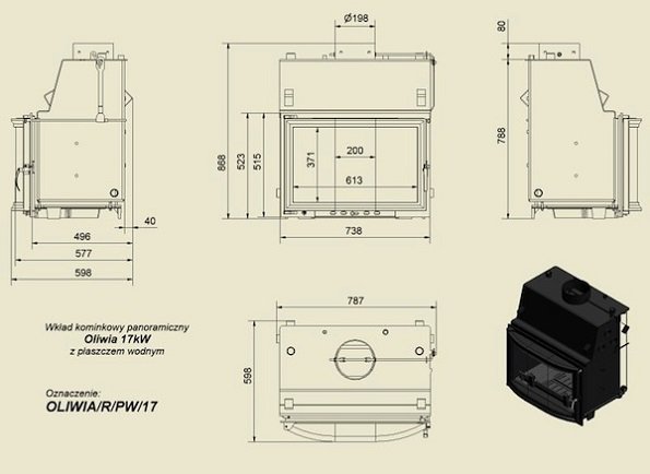 Топка с водяным контуром OLIWIA/R/PW/17, панорамное стекло