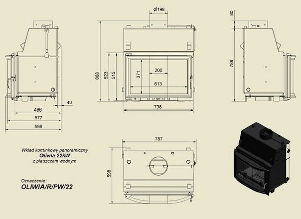 Топка с водяным контуром OLIWIA/R/PW/22, панорамное стекло
