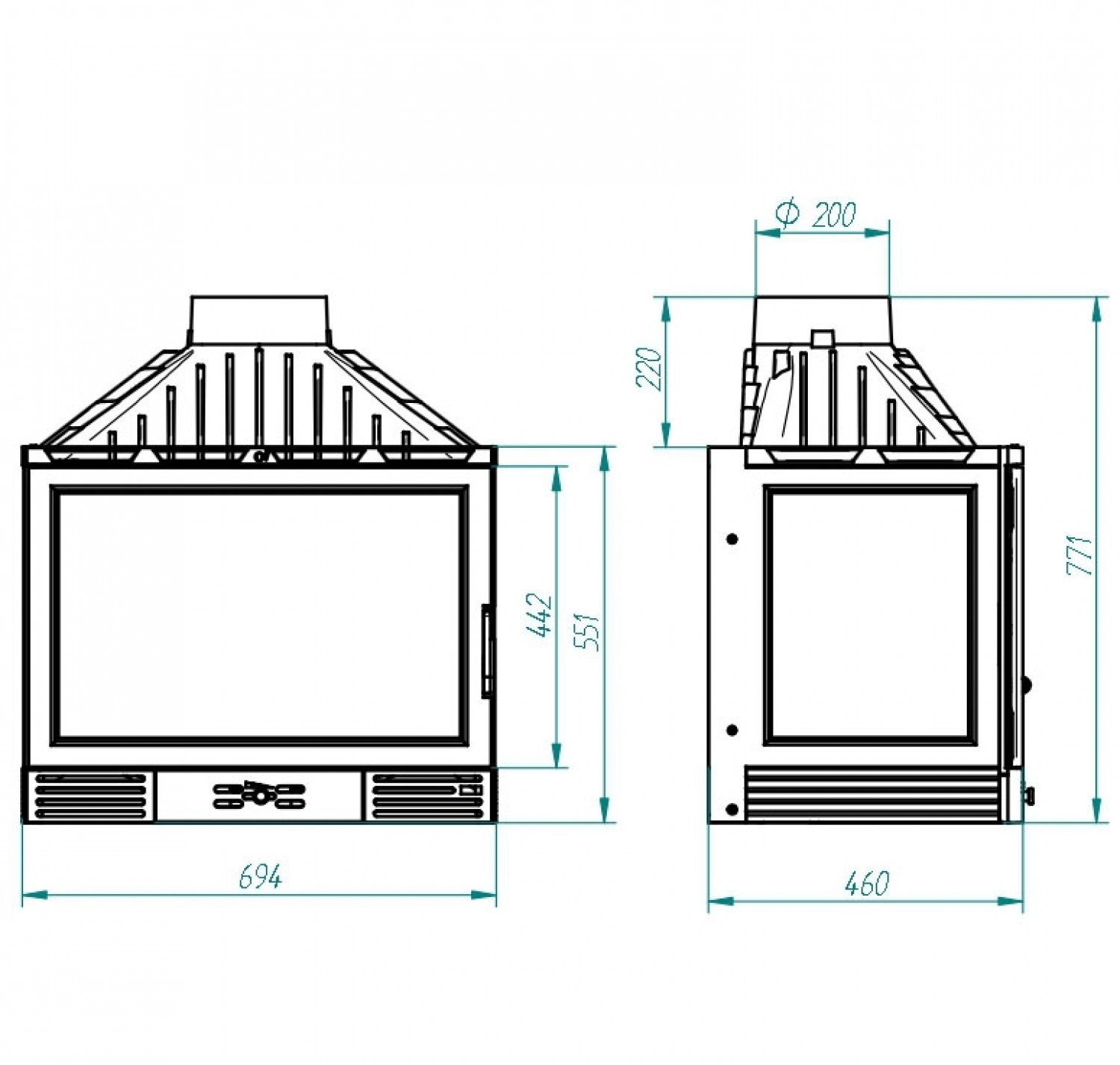 Топка 715 D CL, с заслонкой, стекло справа (Ferlux)