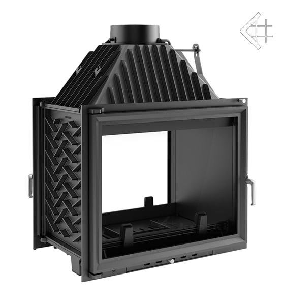 Сквозная чугунная топка, которую можно установить посреди помещения. Требует специальной каминной облицовки. В зависимости от утепления дома, способен согреть 200-250 кв.м. Толщина стекок 7 мм. Ребра увеличивают поверхность теплоотдачи.