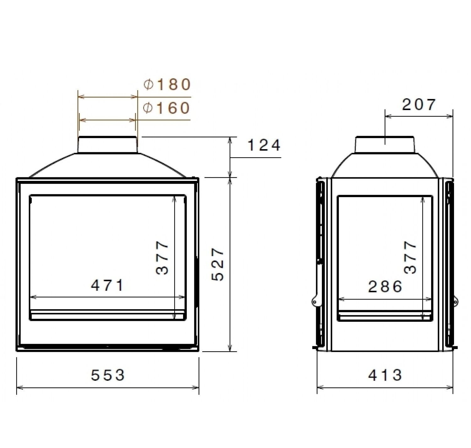 Панорамная топка со стеклами с четырех сторон. С дымосборником.