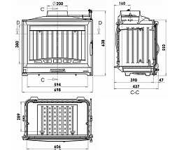 Стальной вертикальный инсерт с первичным и вторичным регистром подачи воздуха, благодаря чему перед попаданием в очаг воздух сначала прогревается.