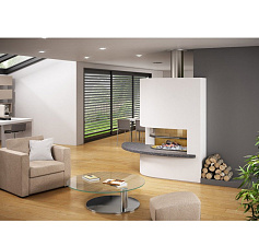 Выпуклое дугообразное жаропрочное стекло топки (легко выдержит температуры до 700 градусов) позволяет существенно увеличить угол обзора огня, усилить эффект от камина.