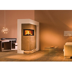 Топка рассчитана на использование в доме, где нет основного источника тепла. В режиме медленного горения она работает до 12 часов при одной закладке дров, что позволяет не подбрасывать дрова длительное время, например ночью. Конструкция топки дает большую гибкость при выборе облицовок и порталов: это немало способствуют регулируемые ножки. Чугунные внутренние панели, покрытые белой эмалью, прекрасно подчеркивают игру племени.