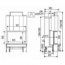 - Трехсторонний вид на огонь, 3 стекла (на фасаде и по бокам)
