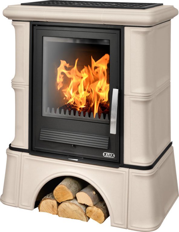 Печь камин ABX BAVARIA K (6,9 кВт в воду), кафельный цоколь – вставка КОМБО (чугун + сталь) – это изразцовая европейская модель, предназначенная для работы на сухих дровах лиственных пород дерева или брикетах. Чешская компания ABX выпускает камины и печи с 1993 года, её продукция в основном представлена на рынках Европы и США, теперь камины ABX доступны и в России качество исполнения продукции компании ABX держится на высочайшем уровне. Топка печи выполнена из долговечной и высококачественной стали, а дверца из чугуна. Огнеупорное стекло (стеклокерамика) выдерживает температуру до 750 градусов. Печью камином можно отопить помещение от 100 до 248 кубических метров, тепло в помещение поступает через стекло дверцы прямым излучением тепла и посредством конвенции, холодный воздух поступает снизу печи и, проходя через пространство между топкой и облицовкой, выходит через конвекционные отверстия уже горячим. Вес печи в 172 кг, позволяет устанавливать её без отдельного фундамента. Топка печи имеет систему вторичного дожига. Уменьшая приток воздуха, можно перевести печь в режим длительного горения, увеличив время горения дров. Дровяная кафельная печь с водяной рубашкой (или контуром) предназначена для отопления загородного дома за счет циркуляции горячей воды (или антифриза). Печь подсоединяется к батареям центрального отопления. Работает система следующим образом: теплоноситель нагревается в топочной камере, далее «выталкивается» в трубы, а через них в радиаторы, проходит по всему дому, отдавая энергию, затем уже в остывшем виде возвращается обратно в печь камин. Для лучшей циркуляции воды (антифриза) по закольцованной системе используется специальный насос, для защиты оборудования от последствий перегрева - расширительный бак. Изразцовые печи проектируют и изготавливают вручную на заводах компании ABX. Облицовка изразцовых печей экологически чиста и надежна, сохраняет тепло более пяти часов после прогорания дров.Печь камин ABX BAVARIA K (6,9 кВт в воду), кафельный цоколь – вставка КОМБО (чугун + сталь), облицована красивейшим кафелем выдерживающем высокие температуры и очень долговечным, а различные варианты цветовых исполнений камина позволят подобрать тот вариант, который наиболее гармонично впишется в интерьер. Печь камин настолько качественно сделана, что компания производитель ABX даёт на неё гарантию 5 лет.