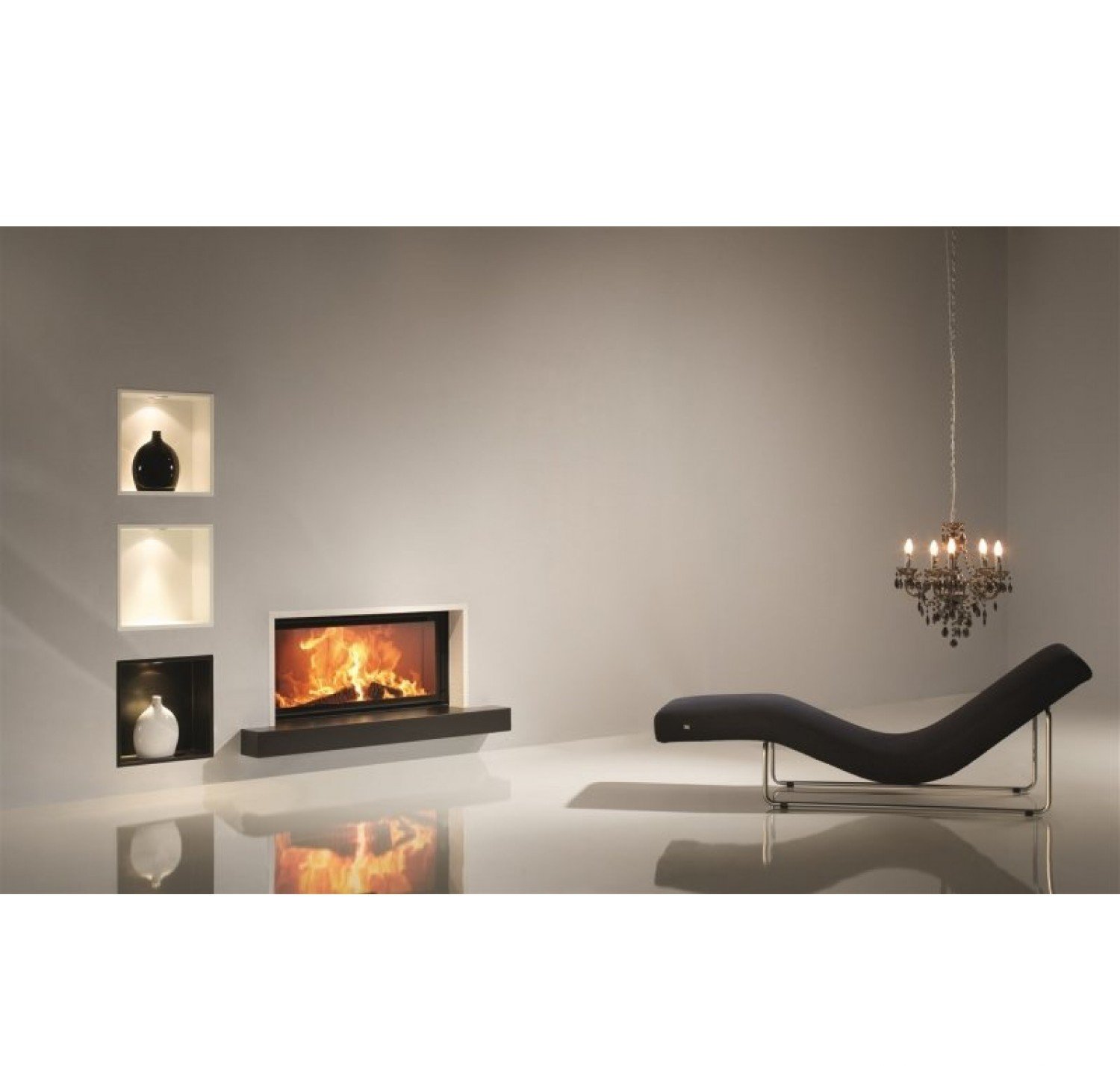 Каминная топка с прямым стеклом. Топочная камера футерована шамотом. Подъёмный механизм двери (система Easy-Lift). Ширина дверки 1010 мм. Высота дверки 458 мм. Возможно подключение воздуха извне.
