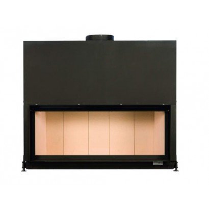 Каминная топка с прямым стеклом. Топочная камера футерована шамотом. Подъёмный механизм двери (система Easy-Lift). Ширина дверки 1350 мм. Высота дверки 538 мм. Возможно подключение воздуха извне.