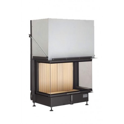 Трёхсторонняя каминная топка. Топочная камера футерована шамотом. Подъёмный механизм двери (система Easy-Lift). Ширина дверки 424+855+424 мм. Высота дверки 539 мм. Возможно подключение воздуха извне.
