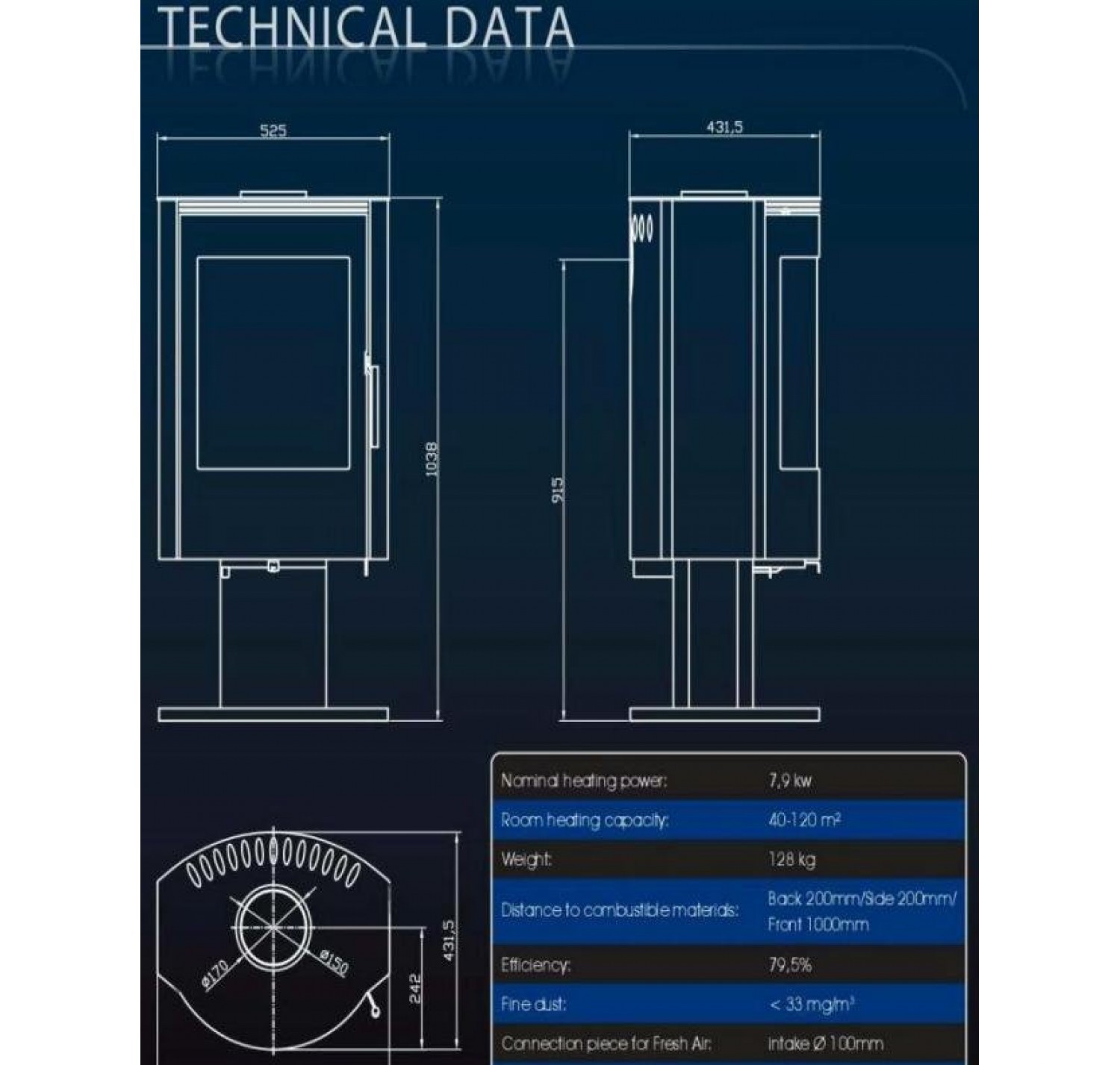 • Диаметр дымохода, (мм)