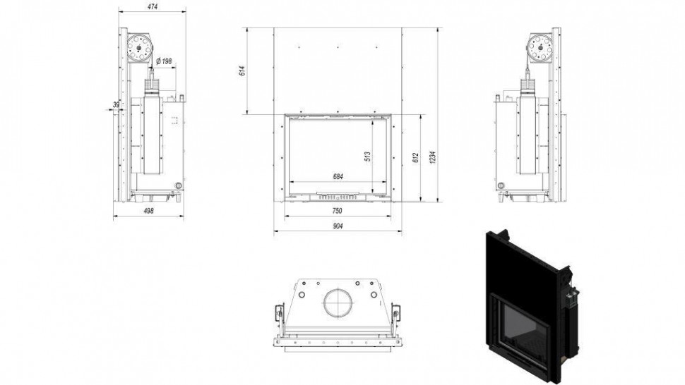 • Дверь каминной топки декорирована стеклом, которое выдерживает температуру до 750 градусов.