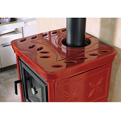 Эта необычная печь имеет не только уникальную форму, но и дополнительную возможность вращения корпуса. Такие поворотные модели требуют ровной поверхности установки и круглых притопочных стекол для защиты полового покрытия от горячих угольев при открытии дверцы топки. Камера сгорания изготовлена из литого чугуна и имеет плоское панорамное окно из термоупорной стеклокерамики. Внешняя поверхность камина облицована керамической плиткой – такие изразцы для печи компания La Nordica делает по фирменной технологии вручную. Печь Fireball способна отапливать 172 куб. метра жилого пространства и имеет 6 киловаттную мощность.