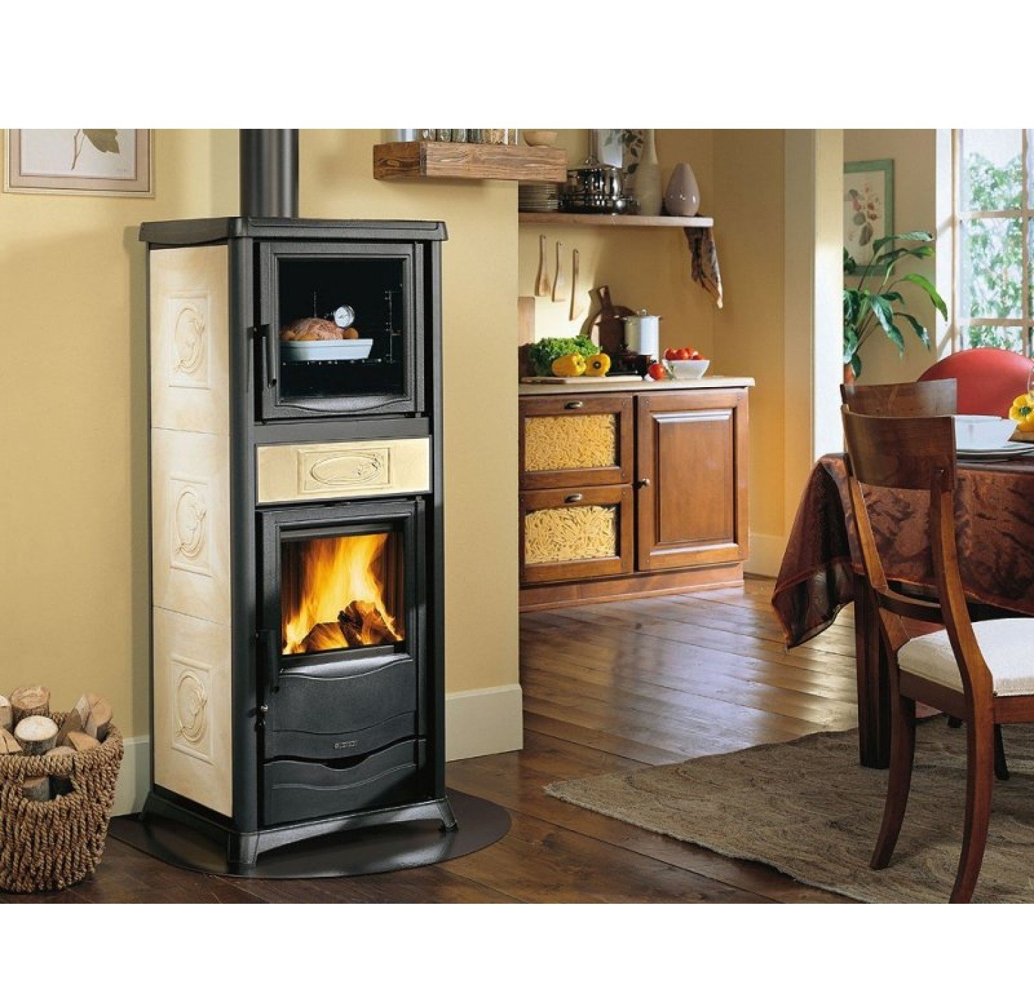 Печь-камин La Nordica Rossella Plus Forno EVO прекрасно дополнит Ваш интерьер и станет хорошим помощником не только в обогреве Вашего дома, а и в приготовлении любимых блюд. Данная модель имеет в своей конструкции вместительный духовой шкаф, которым можно воспользоваться в любое время суток. Материал для производства печи-камина данной модель был выбран чугун, так как он имеет самую высокую прочность и превосходную теплоотдачу. Благодаря прочности чугуна, изделие прослужит намного дольше. А благодаря хорошей теплоотдаче чугуна, можно почувствовать первое тепло от печи-камина практически в первые минуты работы топки. Печь Rossella Plus Forno EVO имеет большую мощность, которая составляет 9,1кВт.