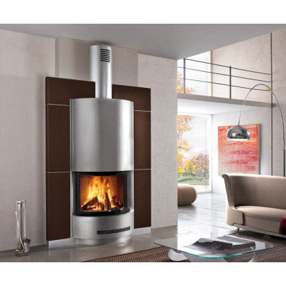 Облицовка из майолики ручной работы со стальной верхней частью дымохода и стальными рамками. На фото представлена модель в цвете Moka с дровяной топкой HT 760.