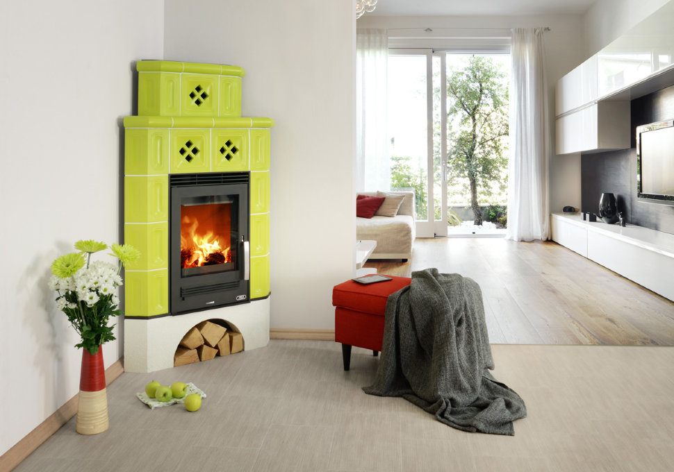 Нагревание происходит в несколько этапов. На первом этапе выделяемое тепло проникает в пространство, заполненное кирпичом, и повышает его температуру порой до 100 градусов. При этом не разрушается кладка печи и сам изразец, потому что эти два элемента между собой не соединены и не подвергаются влиянию повышенной температуры, выделяемой очагом.