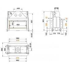 | Чугунный дымосборник Упрощённое соединение с дымоходом 0-90° | Колосниковая решетка Удобная ручка для поднятия решётки, не нужен специальный ключ | Регулятор подачи воздуха Нет необходимости в ключе для регулировки подачи воздуха - нет опасности поцарапать топку | Адаптер приточного воздуха Возможность внешней подачи воздуха на горение из подвала, из соседнего помещения или с улицы. Диаметр патрубка 125 мм. |