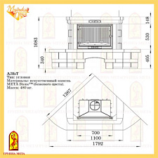 Портал из натурального камня (выбор камня из каталога). В комплект входят декоративные отделочные рамки, необходимые для оптимального монтажа топки.