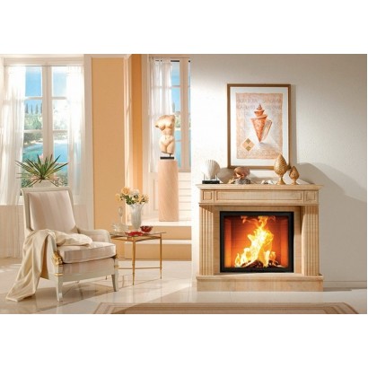 Портал из натурального камня (выбор камня из каталога). В комплект входят декоративные отделочные рамки, необходимые для оптимального монтажа топки.