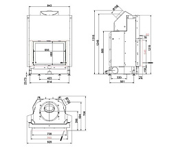 | Чугунный дымосборник Упрощённое соединение с дымоходом 0-90° | Колосниковая решетка Удобная ручка для поднятия решётки, не нужен специальный ключ | Регулятор подачи воздуха Нет необходимости в ключе для регулировки подачи воздуха - нет опасности поцарапать топку | Адаптер приточного воздуха Возможность внешней подачи воздуха на горение из подвала, из соседнего помещения или с улицы. Диаметр патрубка 125 мм. |