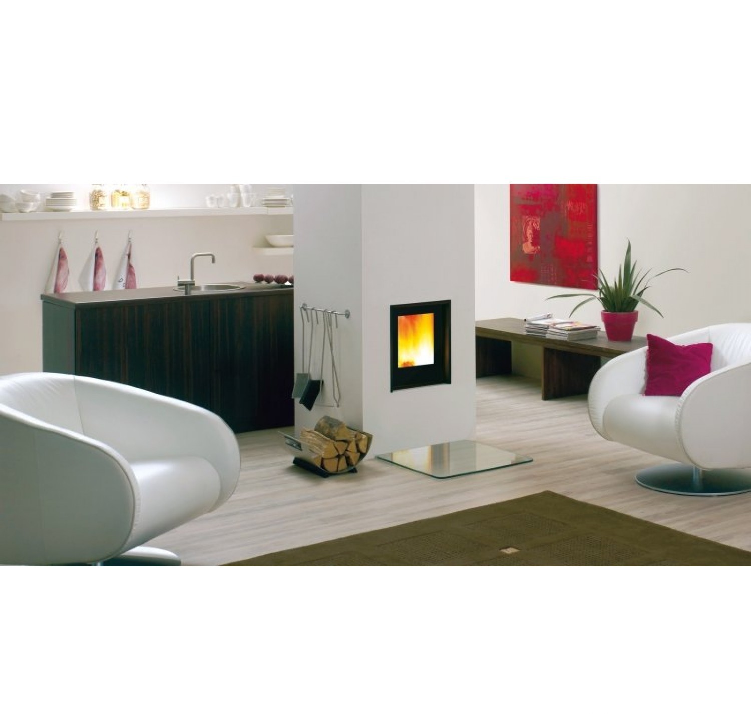Процесс горения поддерживается принудительной подачей воздуха, которая к тому же эффективно регулируется, обеспечивая контроль мощности. Прямые стекла обоих окон защищены от гари и копоти, что позволяет сохранять отличный обзор камеры сгорания без лишних усилий.