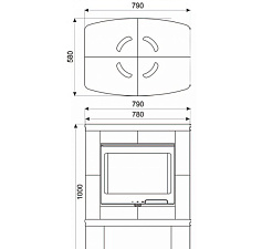 Фасадная дверка имеет только боковое открывание. Для удобства пользования на фасаде расположена удобная стационарная ручка-замок. Оформление дверной рамки фасада топки выполнено в классическом стиле.