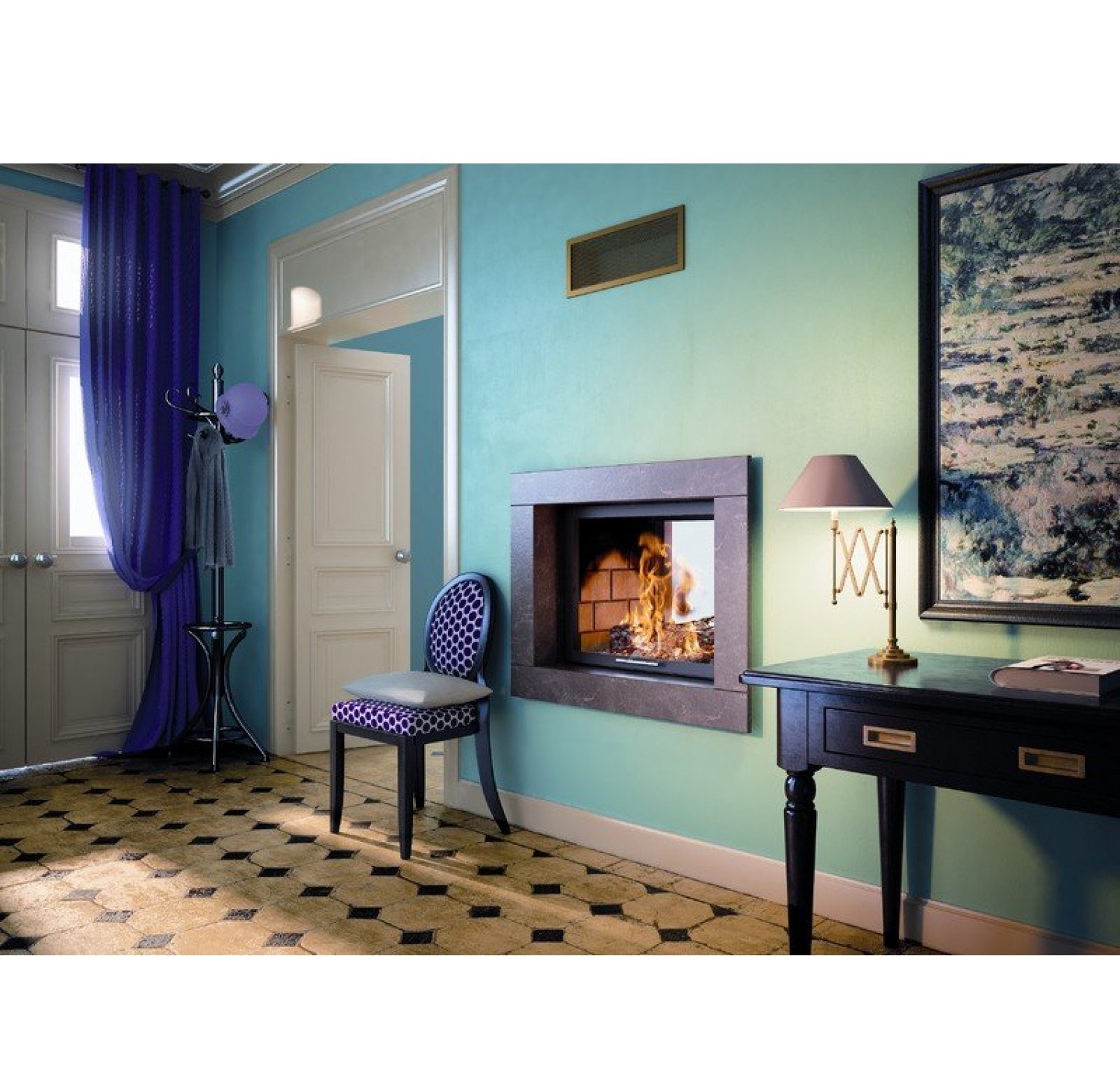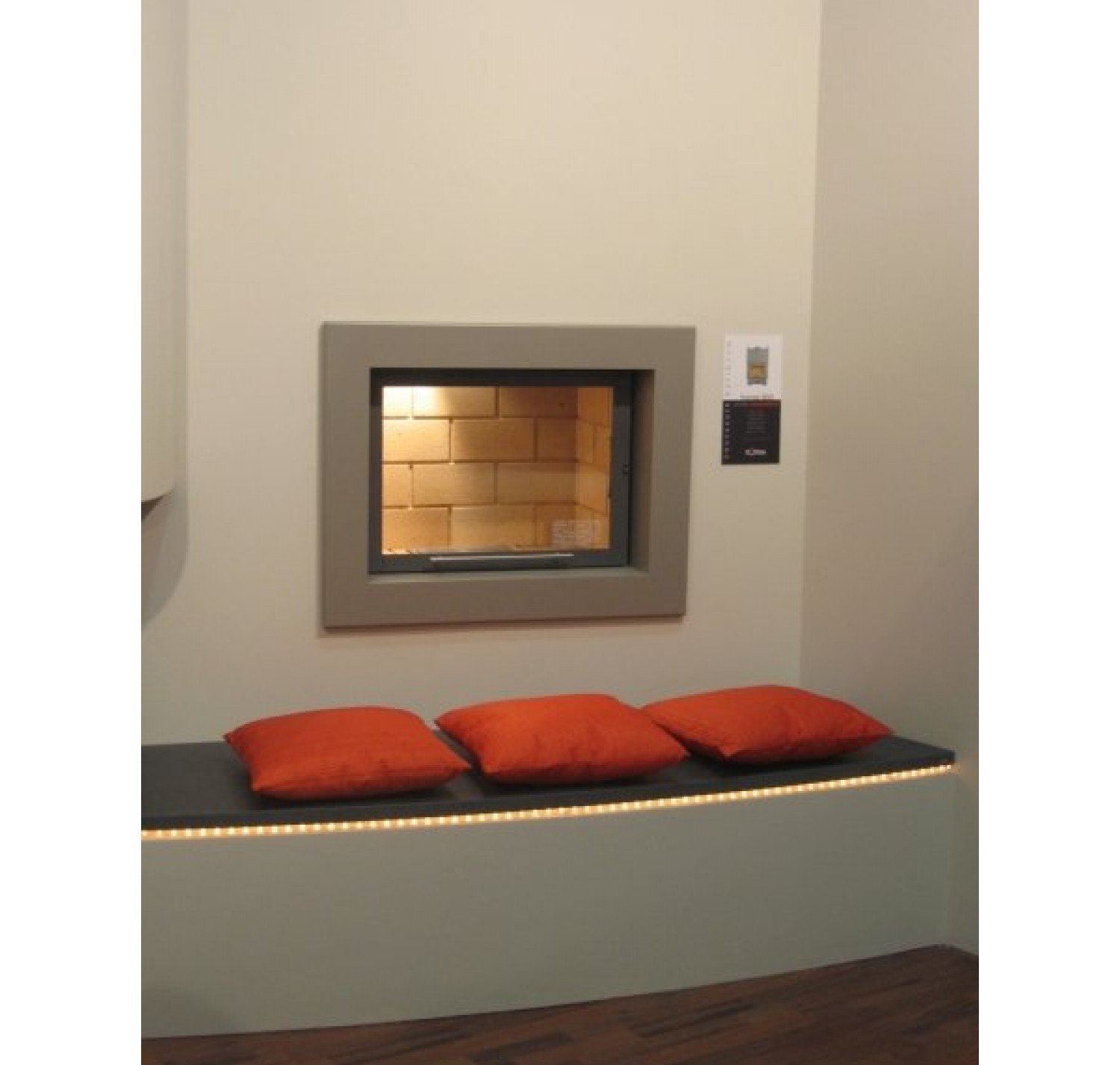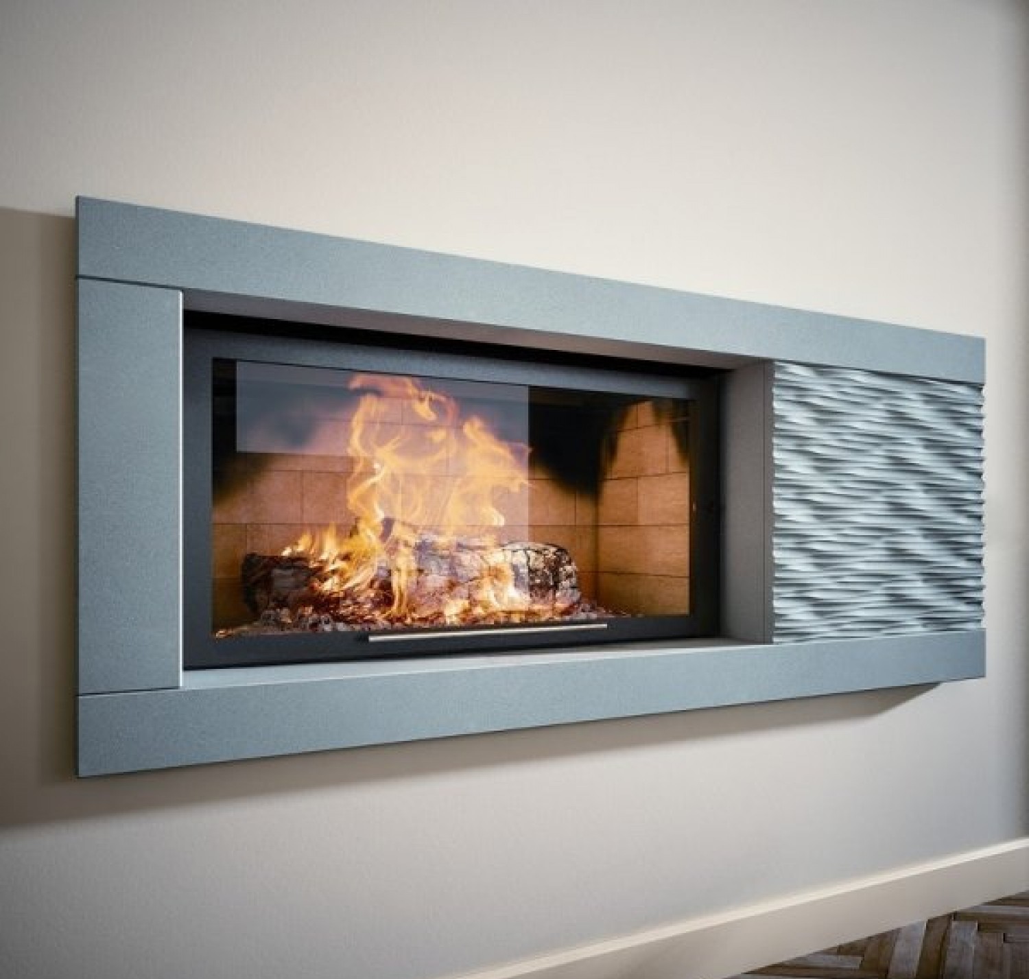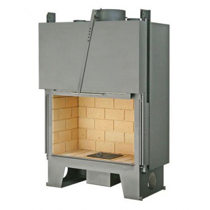 Каминная топка оснащена системой очистки стекла, встроенным шибером и системой подводки внешнего воздуха в камеру сгорания, а также оборудована цепным механизмом подъема двери, съемной колосниковой решеткой и ножками, которые дадут возможность установить топку на неровной поверхности.