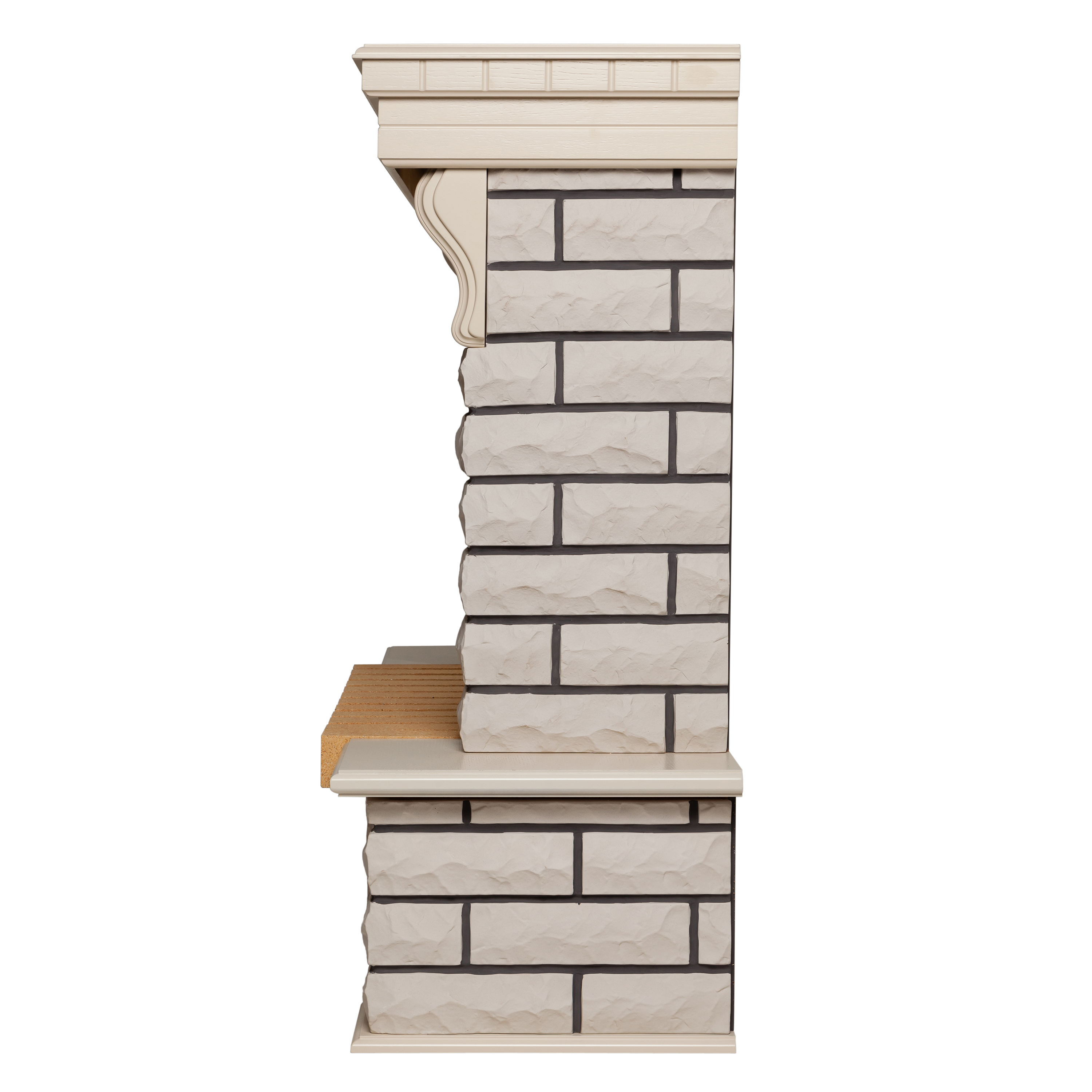 - Изготовлен из искусственного камня и МДФ, покрытого шпоном, - прочного, надежного и стойкого к любым внешним воздействиям материала. Сочетание светлого камня и дерева, декоративная фрезеровка. Дизайн дополнен выемкой для хранения дров в основании обрамления. С массивной каминной полкой.