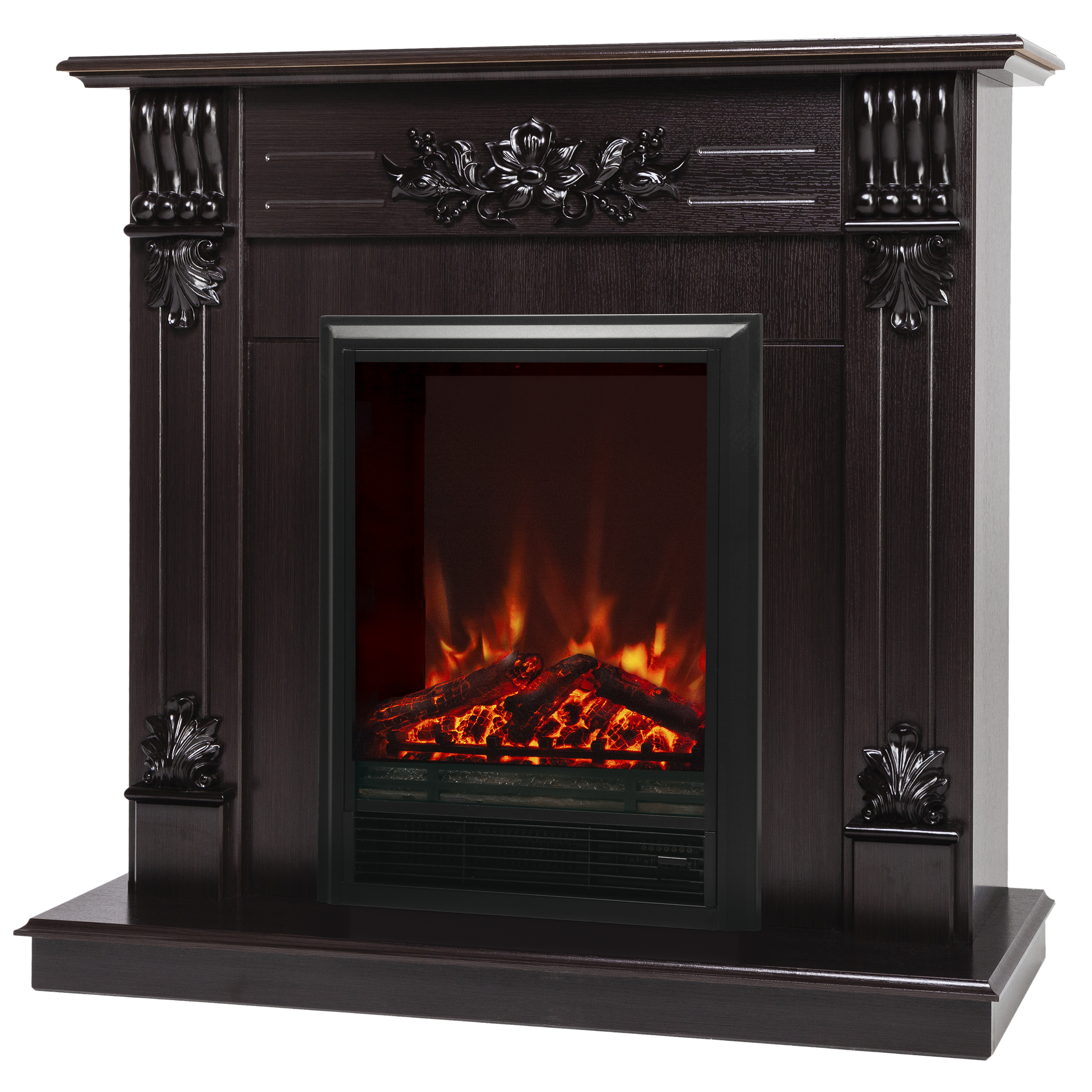 Электрический каминокомплект RealFlame Ottawa STD DN очаг Eugene темный орех выполнен в классическом стиле с элементами фигурной резьбы. Имеет компактный размер и достаточно универсален в плане встраивания в тот или иной интерьер.