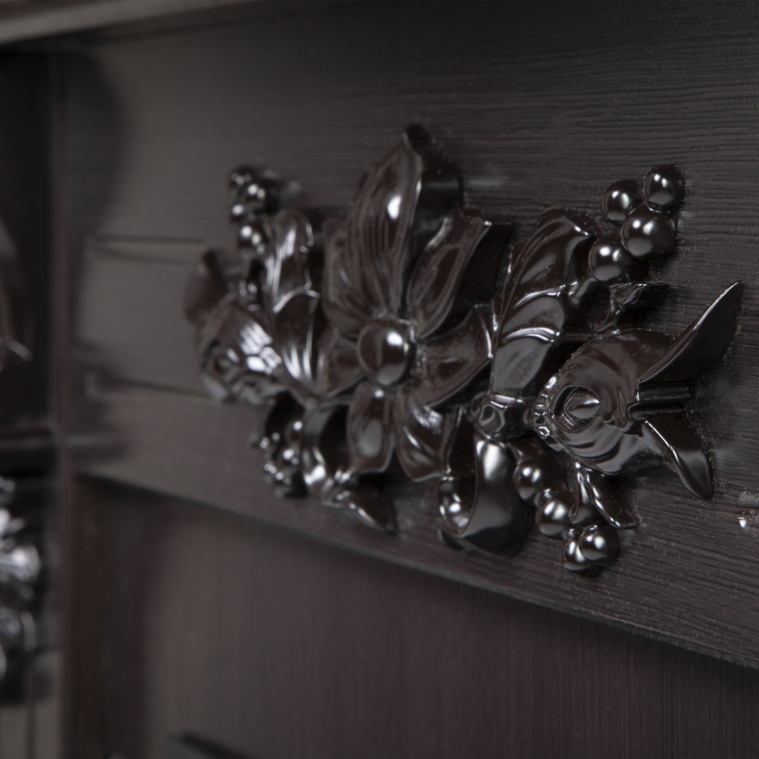 - Выполнен в высококачественном эко-шпоне. Компактное обрамление по бокам украшают объемные колонны, которые прекрасно сочетаются с центральным растительным декором.