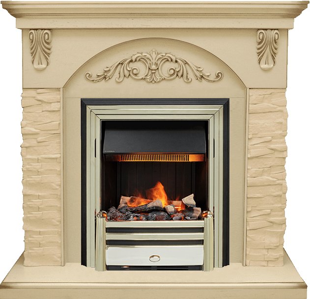 Электрокамин выполнен в золотом цвете. Золото – это материал, который никогда не выйдет из моды, это свидетельство безупречного вкуса и верности традициям. Цвет золота подчёркивает неповторимый стиль и необычность этого камина. К очагу можно подобрать любой портал, который подойдет к вашему интерьеру и станет его лаконичным продолжением. В очаге Dimplex Cavendish применяется эффект «живого» пламени Opti-Myst, в основу которого заложен инновационный принцип имитации огня – в очаге мерцает пламя, практически неотличимое от настоящего. В камине используется муляж дров ручной работы, которые невозможно отличить от настоящих поленьев, а благодаря подсветке создается полная имитация жарко пылающего очага.