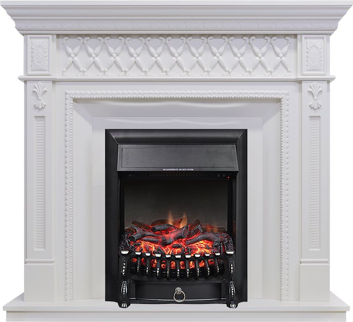 Портал совместим с электрическими очагами Royal Flame, пламя в которых стилизовано под настоящее. Такой каминокомплект прекрасной подойдет для установки в интерьере спальни, гостиной или холла.