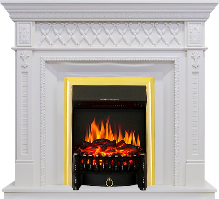 Портал совместим с электрическими очагами Royal Flame, пламя в которых стилизовано под настоящее. Такой каминокомплект прекрасной подойдет для установки в интерьере спальни, гостиной или холла.