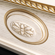 Широкий постамент, узкая крышка, практически незаметные колонны по бокам и изящный лепной узор на фронтоне делают портал максимально сдержанным и изысканным – он безупречно впишется в интерьер практически любого помещения в классическом стиле.
