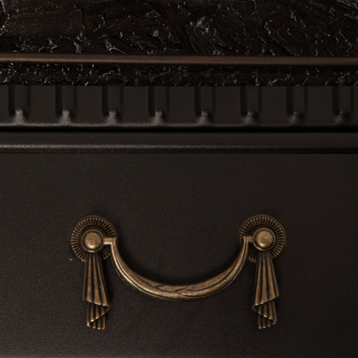 Электрический очаг Majestic Lux предназначен для встраивания в стандартные обрамления. В качестве муляжа - сгоревшие дрова. Нагреватель с поддувом спрятан в козырьке очага и обеспечивает обогрев в холодную погоду. Переключатель позволяет включать на полную (1 500 Вт) или половинную (750 Вт) мощность. В режиме визуализации пламени потребление электроэнергии составляет 80 Вт (две свечеобразные лампы E14 мощностью 40W)