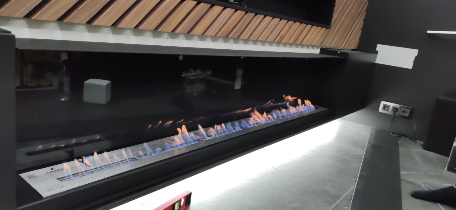 Закончили монтаж биокамина с линией огня 1700 мм. Firezo Classic без рамок Задача была сделать так, что бы корпус камина "висел" в воздухе и был сделан точно по размером ниши в мебельной полке . Камин повесели на анкерные болты. Установка камина заняла всего пол часа. Клиент доволен и мы тоже.